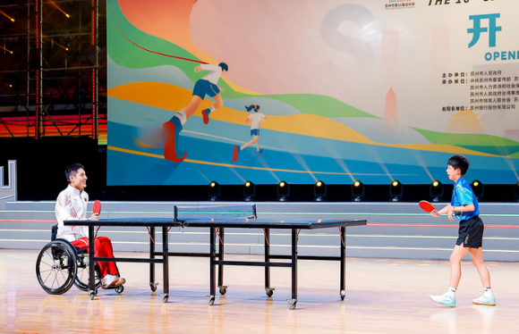 蘇州市第十六屆運(yùn)動會開幕 巴黎殘奧會冠軍馮攀峰秀球技